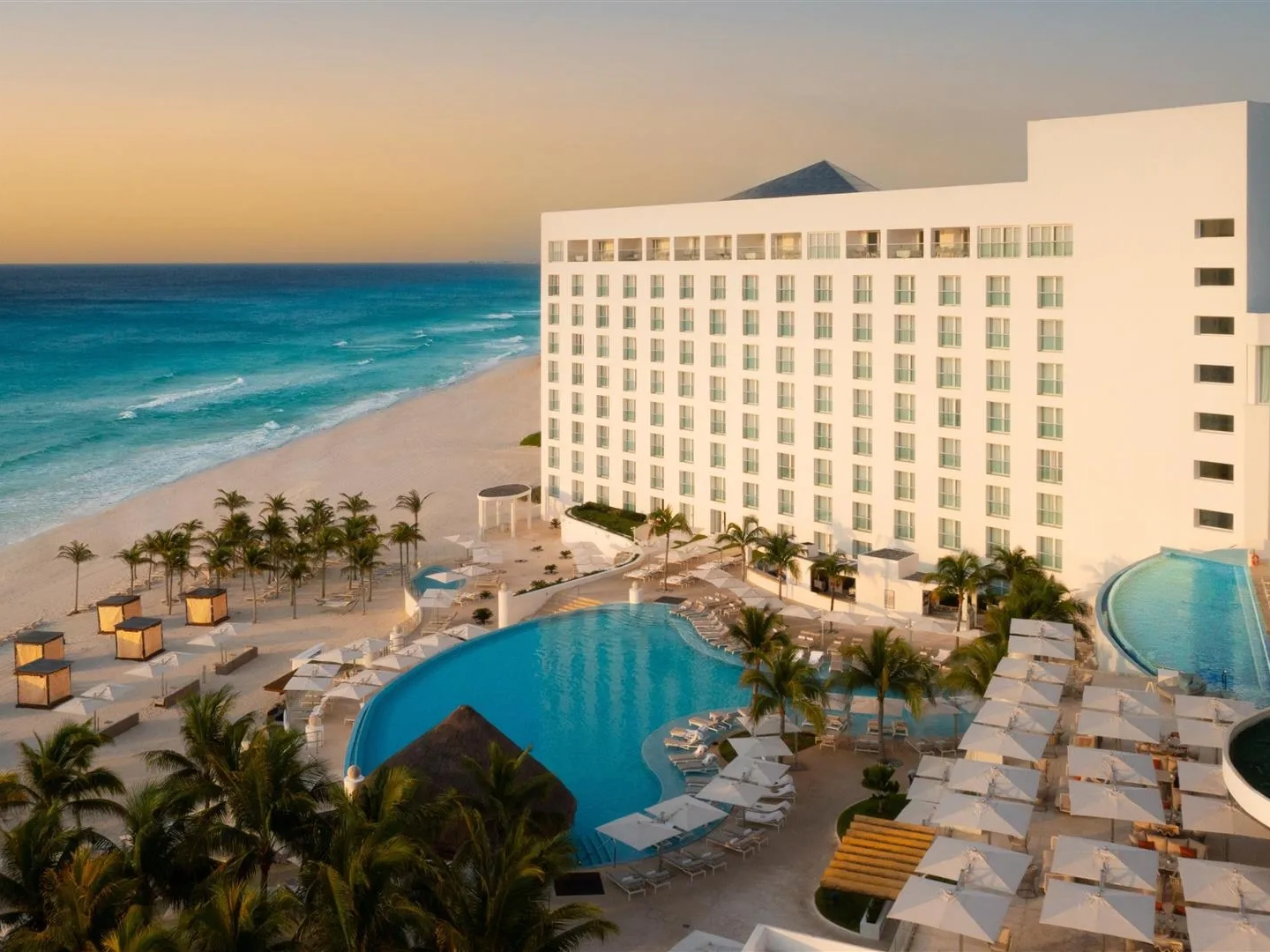 AVA Resort Cancun is a new, luxury all-inclusive resort that opened in 2024, designed with bold architecture and a lively, modern atmosphere. Every room offers ocean views under its Oceanfront Promise™, while highlights include AVA Bay, a massive 2.8-acre saltwater lagoon for water sports, multiple pools, a 66,000 sq. ft. spa, and over 17 restaurants and bars. With vibrant nightlife, family-friendly amenities, and a focus on wellness, AVA blends upscale comfort with high-energy experiences, making it a standout choice for travelers seeking both luxury and excitement in Cancún.